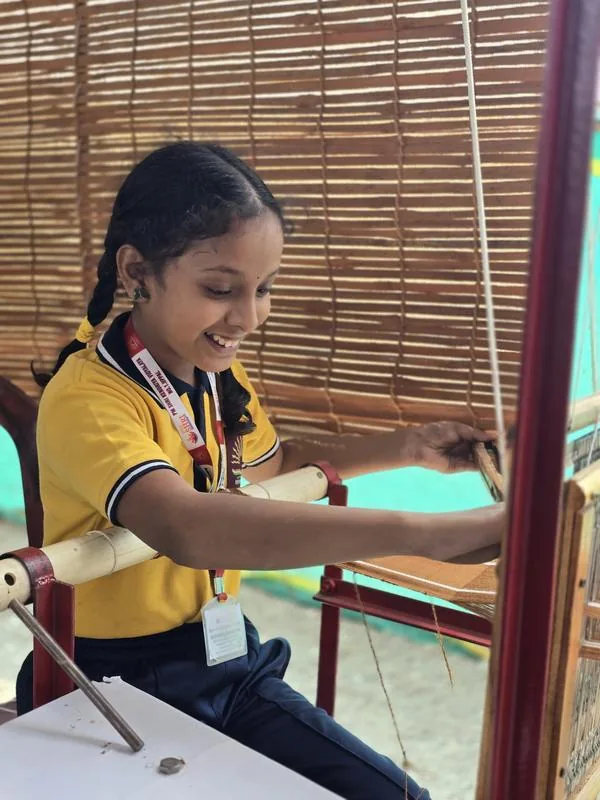 With a mission to connect students to the journey of fabric — from field to fabric — the program has already engaged 10,000+ students, offering them a unique opportunity to understand traditional weaving practices in an interactive and meaningful way.